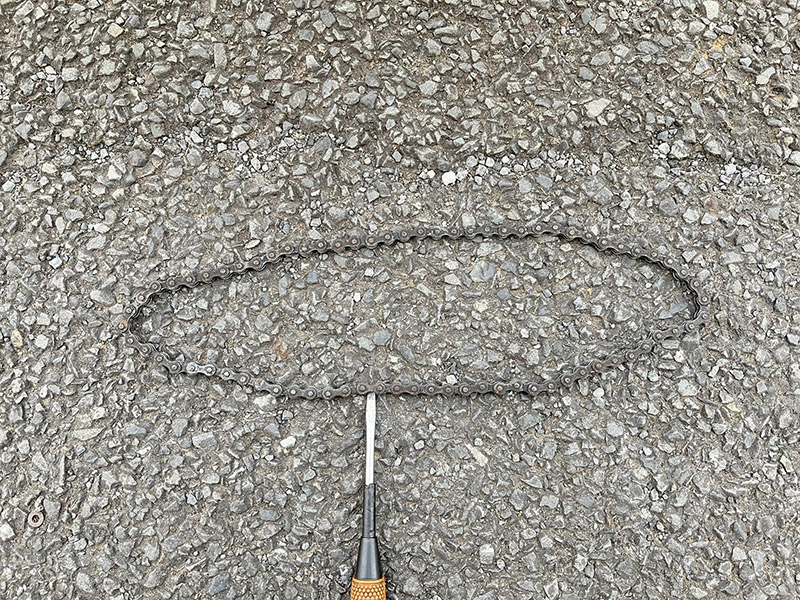 元々付いていたチェーン、37リンクです。購入したチェーンをチェーンカッターで同じ長さにします。