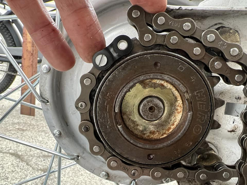 仕方ないのでシングル用半コマチェーンをつなぎます。