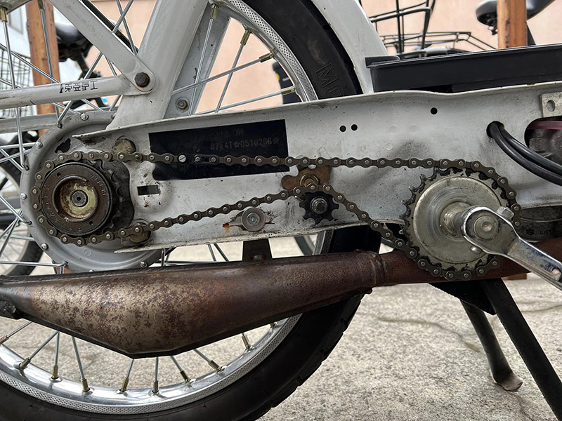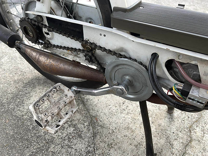 フロントスプロケットがciaoよりも小さいので、エンジン始動が軽い脚力で済みます。