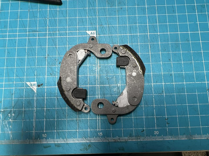ただし、パテが欠けてライニングに噛んだりすると最悪、エンジンの回転が止まらなくなりますので真似するときは自己責任でお願いします。