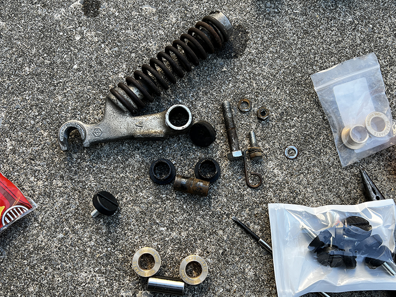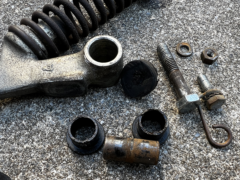 バラしたピボットブッシュ、シャフト、ダンパーゴムです。
