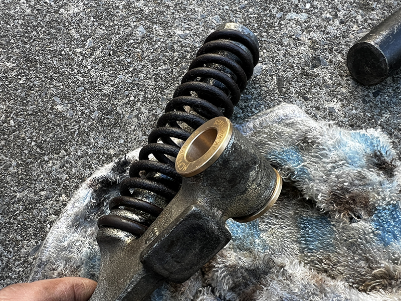 シャフトブッシュが樹脂製の為摩耗でガタが出るのとシャフトの錆で内側もやられていきます。