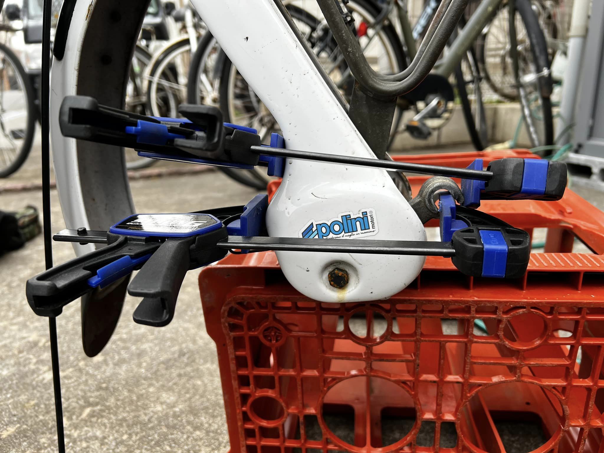 トリガークランプでカチカチしながらサススプリングを縮めていきます。