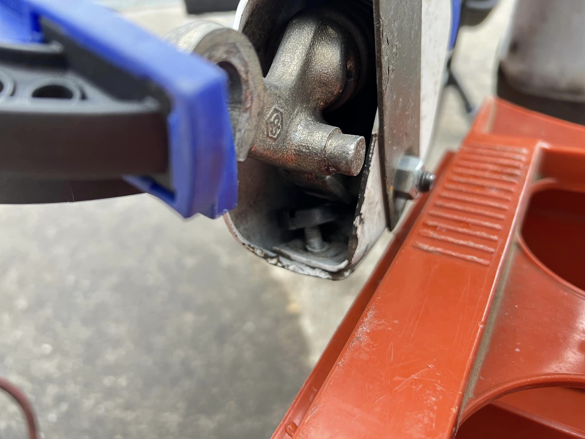 フォーク下部の余っているネジ部分をグラインダーで切り飛ばし、サススプリングを縮めてブッシュゴムのみ取り出します。