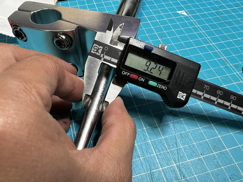 ステムロッド径がΦ9.24...インチネジ規格ですね...。ロッドの自転車用流用もできないし、何よりヘッドライトステーが挟めません。
