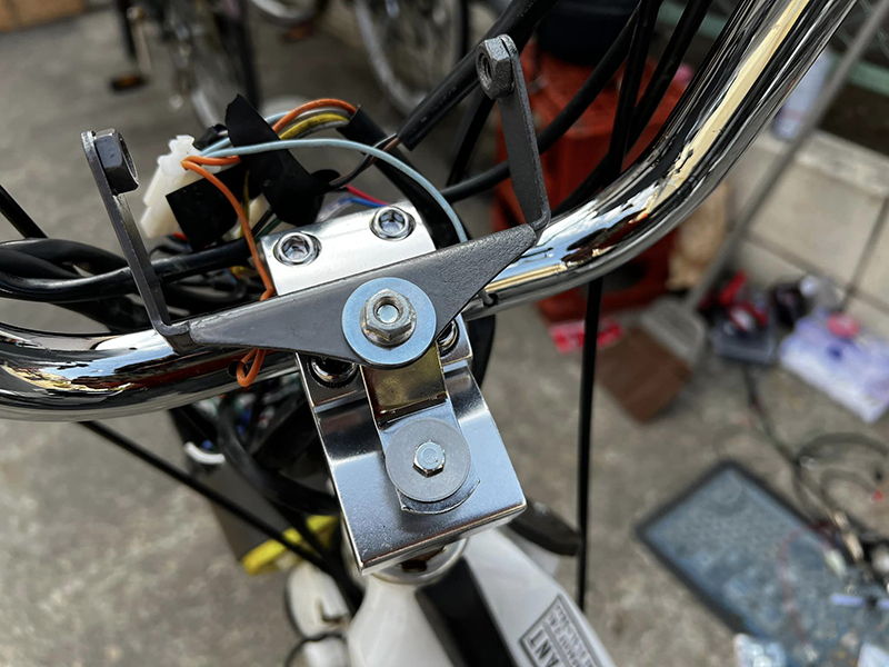 当初、こうする予定でしたが、ヘッドライトがハンドルに干渉して付きません...。さらにステーを作る必要がでてきました。