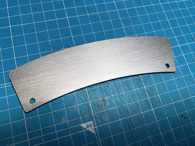 ありきたりな黒にはしたくないので、2mm厚アクリル板を切り出してヘアラインステンレス風のカッティングシートを貼ります。