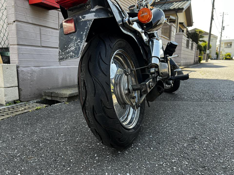 純正規格の4.50-12はダサいパターンしかないのでサイズ変えました。