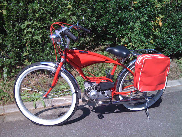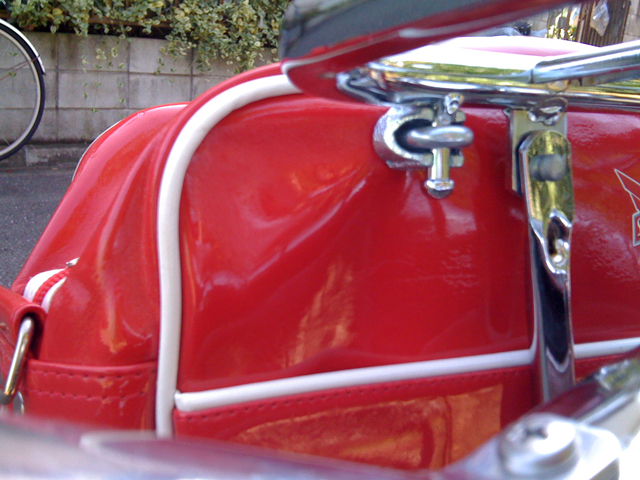 会社にちょうどいい赤のエナメルバッグが転がっていたので取り付けてみました。